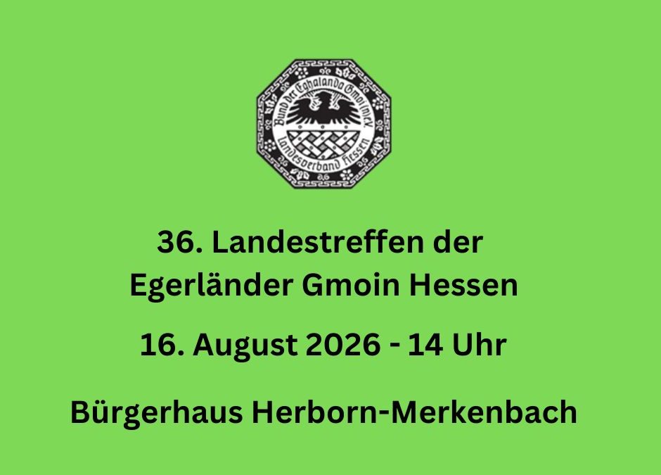 Der Landesverband der Egerländer Gmoin Hessen lädt zu seinem 36. Landestreffen am 16. August 2026 nach Herborn ein.